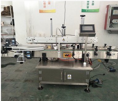 分瓶机构将产品分开后,由传感器检测到产品经过,传回信号到控制系统,在适当位置控制电机送出标签并贴附在产品待贴标位置上